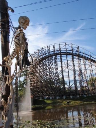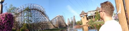 Die Holzbahn "EL TORRO" sind wir heute nicht gefahren weil sie uns letztes Jahr doch sehr in den Kopf gestiegen ist. Aber die Aussicht vom See auf die Bahn haben wir genossen... Dank der Panoramafunktion vom blauen Jörg konnten wir dieses coole Bild machen.