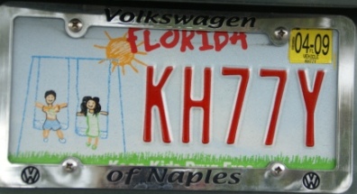 Witzig finde ich das man in Florida gegen Aufpreis "sein Nummernschildbild" bestimmen kann. Hier mal ein paar spontan geknipste Beispiele: