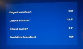 Flugzeit nach HAMBURG nun noch 6:55 Minuten. Die Zeit vergeht schnell. Auch in diesem Flieger ist eine Streckdose unter jedem Sitz, toll !! Das Essen ist auch recht schmackhaft. Und wir haben wieder Glück das ein Platz bei uns in der Reihe frei ist und wir uns ausbreiten können.