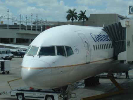 11:10 Uhr: Abgabe des Mietwagens bei BUDGET in der Car Returns line. Kofferwagen für 3 $ geschnappt und zum Continental Check-in Schalter. Danach durch die extrem genaue Sicherheitskontrolle (nur bei nicht AMIS´s). Sie haben sich das ganze Handgepäck genau angeschaut, mit einem Tuch abgewischt und dieses in ein Gerät gestreckt was wohl Spuren auf Sprengstoff, Munition o.ä. entdeckt. Die gleiche Prozedur hatten wir schon auf der Einreise von den Bahamas in die USA. Wir haben keinen Probleme damit. Hauptsache Sicherheit !