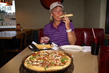 Abends steuern wir den nächsten Pizza-Hut an und "rauchen" ein paar Breadsticks vor der leckeren Pan-Surpreme ☺ Nach dem Kirchen-Hühner Value-Menu für 99 $ war uns heute nicht so.