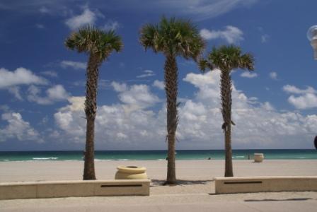 Hotel in Hollywood, springen noch mal ins warme Meer und checken um 13:00 Uhr