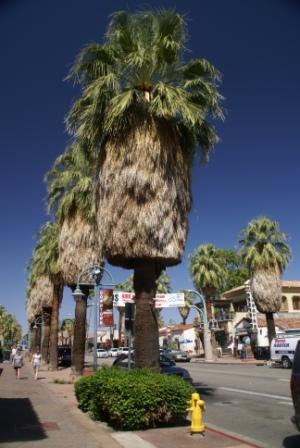 Montag, 26.09.2011: Desert Hot Springs / Palm Springs (Seilbahn auf St. Jacinto Mountains N.M.) Nach einem guten selbst gezauberten Frühstück suchen wir die Straße hoch zur Seilbahnstation in Palm Springs. Da wir ja von Desert Hot Springs nach Palm Springs rein kommen müssen wir einmal durch den ganzen Ort fahren. Palm Springs ist immer wieder nett. Ein sehr gepflegter Ort mit vielen, vielen Palmen und toll geschnittenen Bäumen. Es gibt auch einen Wasserpark hier (Soak City). Den haben wir aber nicht besucht. Er hat im Herbst nur noch an den Wochenenden auf.