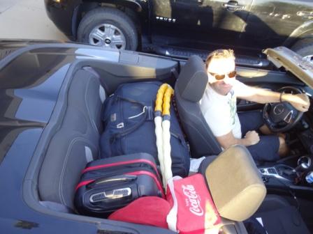 spärlichen Kofferraum das wir fast alles auf dem Rücksitz verstauen müssen.