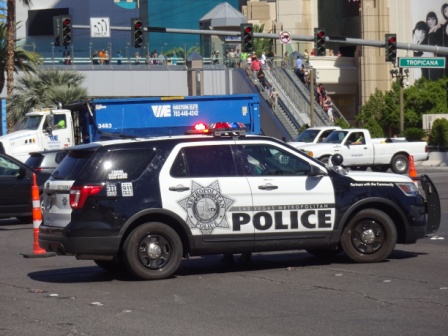 Polizeiaufgebot vor jedem Hotel am Strip.