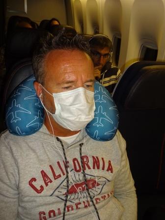Unser Flug startet pünktlich. Wir haben noch jemanden