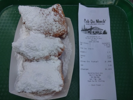 Übrigens die legendären Bergens (Krapfen) beim "Cafe de Monde" schmecken nicht besser als das Schmalzgebäck auf dem Hamburger Dom . An dem bekannten Cafe sind die Warteschlangen soooooooooooo lang das wir uns da niemals angestellt hätten. Wir sehen aber eine Zweigstelle im Riverwalk Shoppingcenter wo wir höchstens 10 Minuten anstehen müssen um das Teil, was in den Reiseführern als das Kult-Gebäck angepriesen wird, zu probieren.
