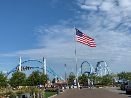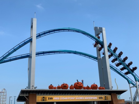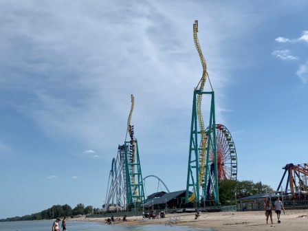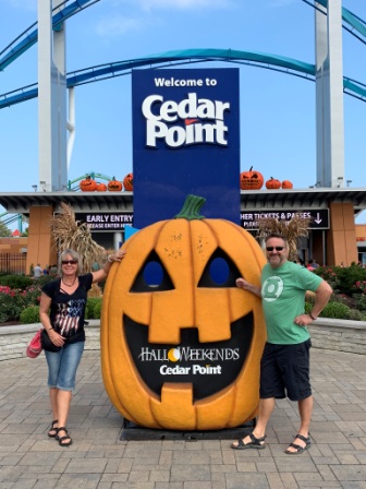 Samstag, 21.09.2019 - CEDARPOINT Tag & Nacht Bei MEIERS, einem großen Supermarkt in Sandusky, erstehen wir 2 Goldpässe für je 99 $ / Person für CEDARPOINT, dem Mekka aller Rollercoasterfans. Genau deshalb sind wir auch nur hier in diesem Nest ☺☺. Der Park liegt auf einer Landzunge vor bei dem Ort. Dort kann es also 24 h lang laut sein. Das würde keinen stören.