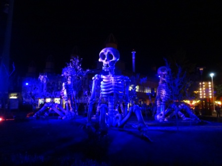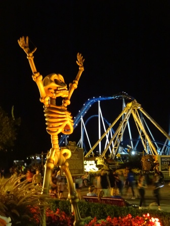 Da eins der Halloween-Wochenenden ist, bricht der Park aus allen Nähten. Unmengen vom Menschen sind hier, unglaublich. Aber da es viele, viele Achterbahnen gibt und der Park irre groß ist verteilt es sich schon ganz gut.