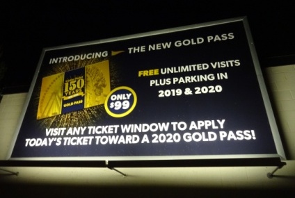 Die Goldpässe beinhalten 1 Jahr lang kostenfreien Eintritt + Parken (spart 25 $) für den Park sowie 10 % auf alles in den Shops und beim Essen. Das ist ein super Preis wo wir doch 2 Tage hier verweilen werden und nächstes Jahr theoretisch auch umsonst den Park besuchen könnten.