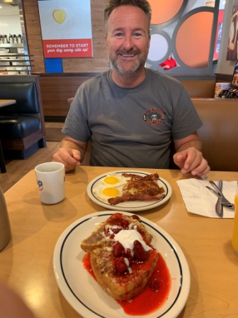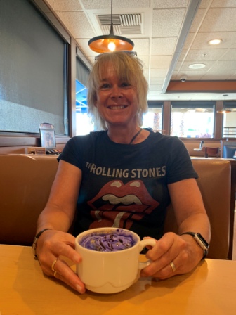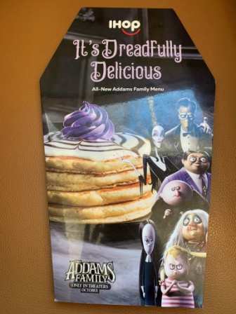 Mittwoch, 02.10.2019, Palm Springs => Cabazon => Palm Springs Ein guter Tag beginnt mit wie immer mit einem schweinischen Frühstück. Dieses Mal beim IHOP. In der Halloween-Zeit ist haben sie ihre Speisekarte "aufgehübscht". Und den lila Kakao muss ich natürlich mal probieren ☺.